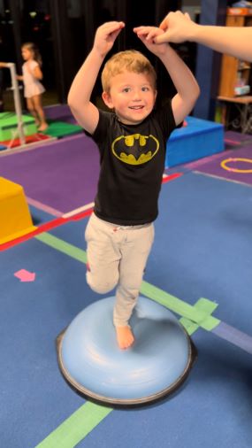 Learn to be Brave, Smart and Strong in our co-ed Preschool Stars Program! Using gymnastics as a framework this program focuses on and reinforces important childhood development skills and movements. These classes are for boys and girls 18 months old to 5 years old!